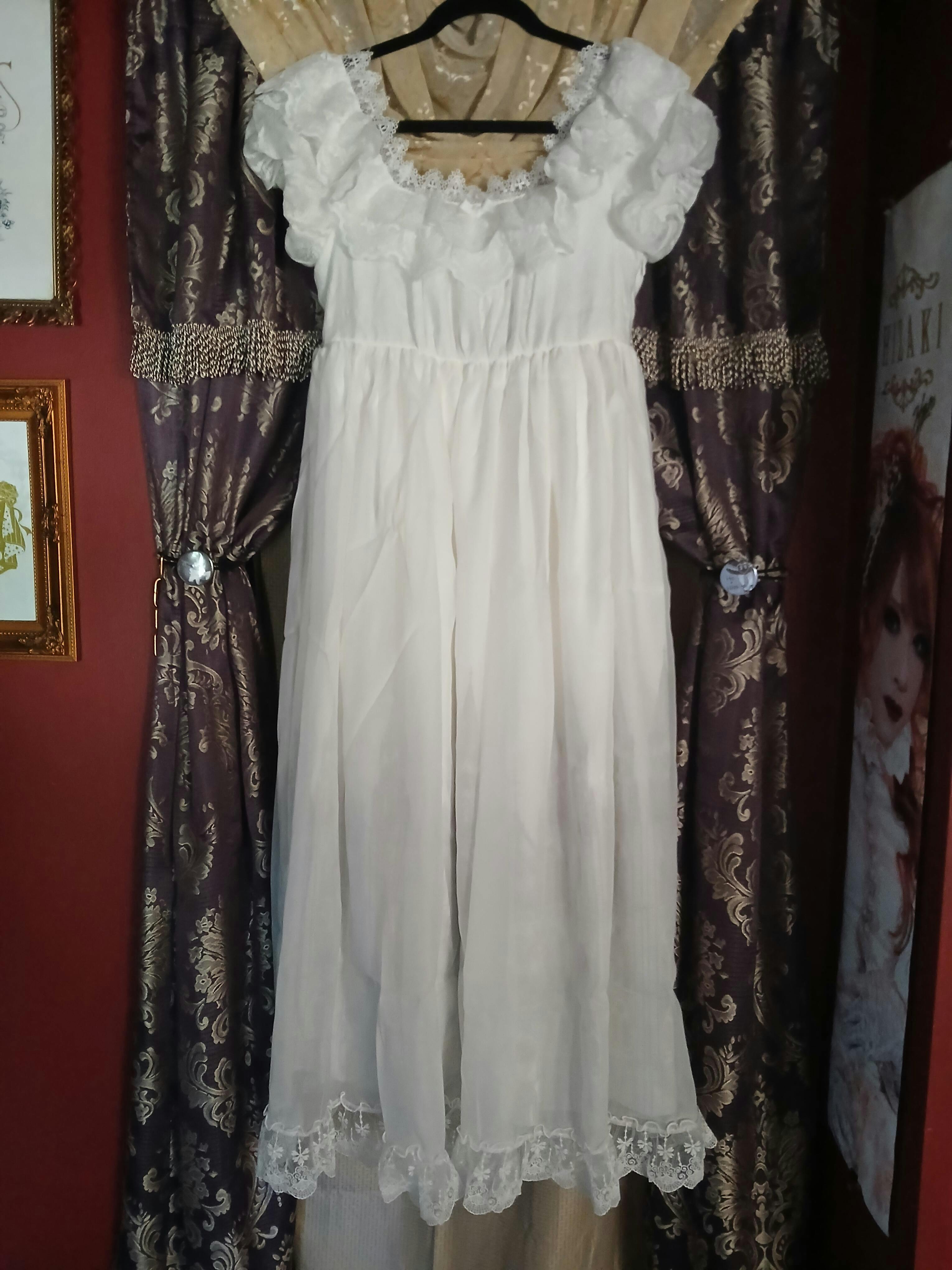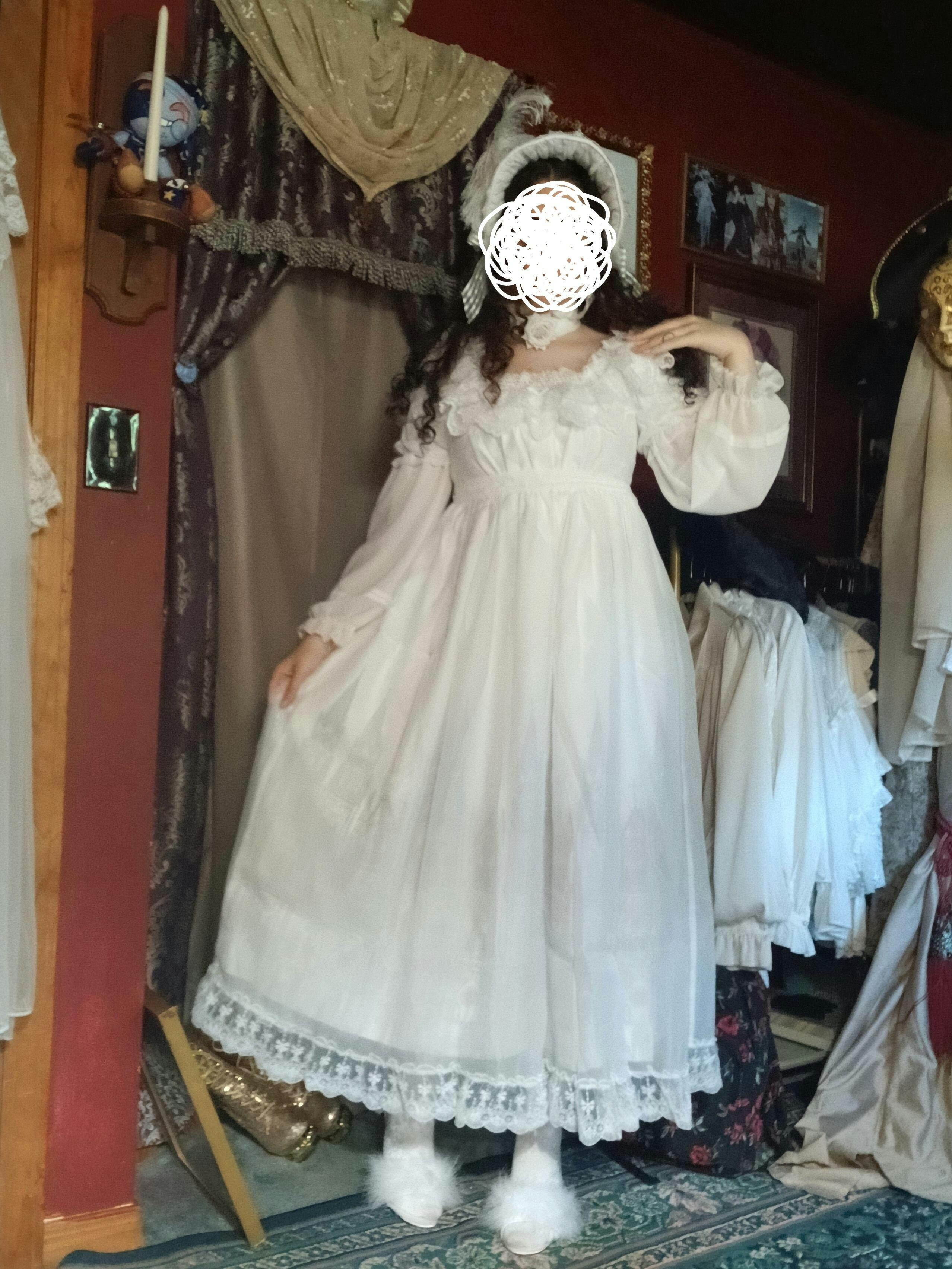 With PUJI - Dawn's Last Light - Castle Printed White Gothic Lolita OP, Two Length Styles