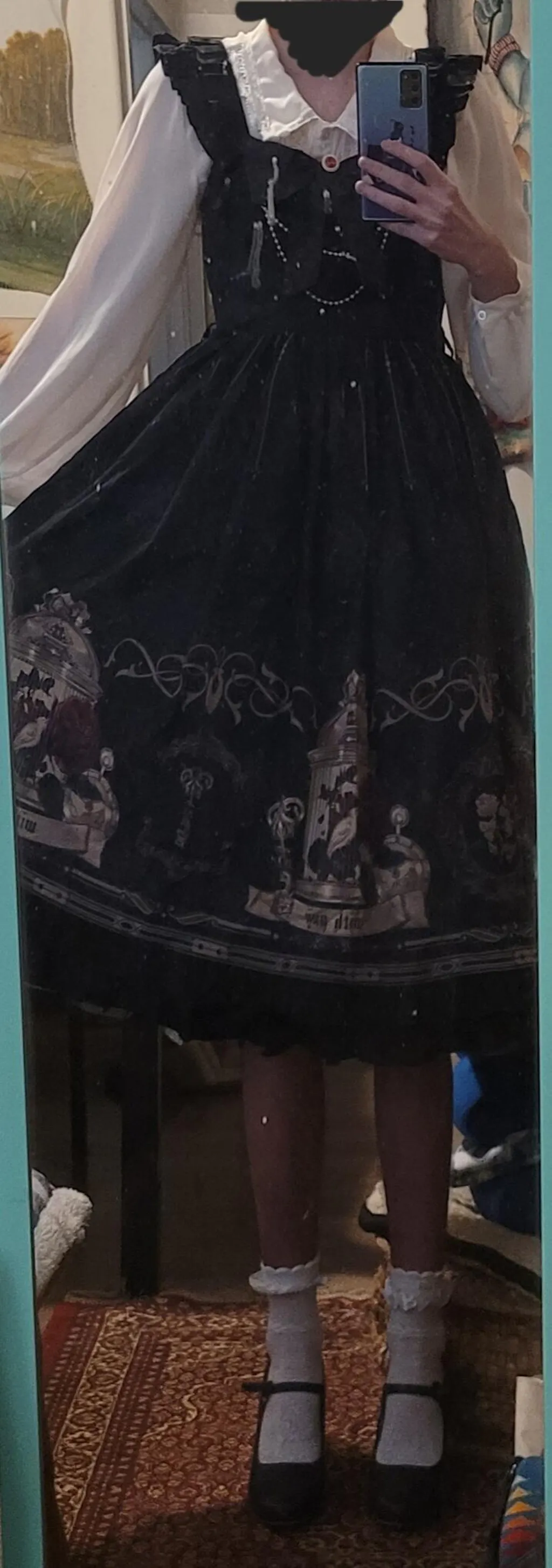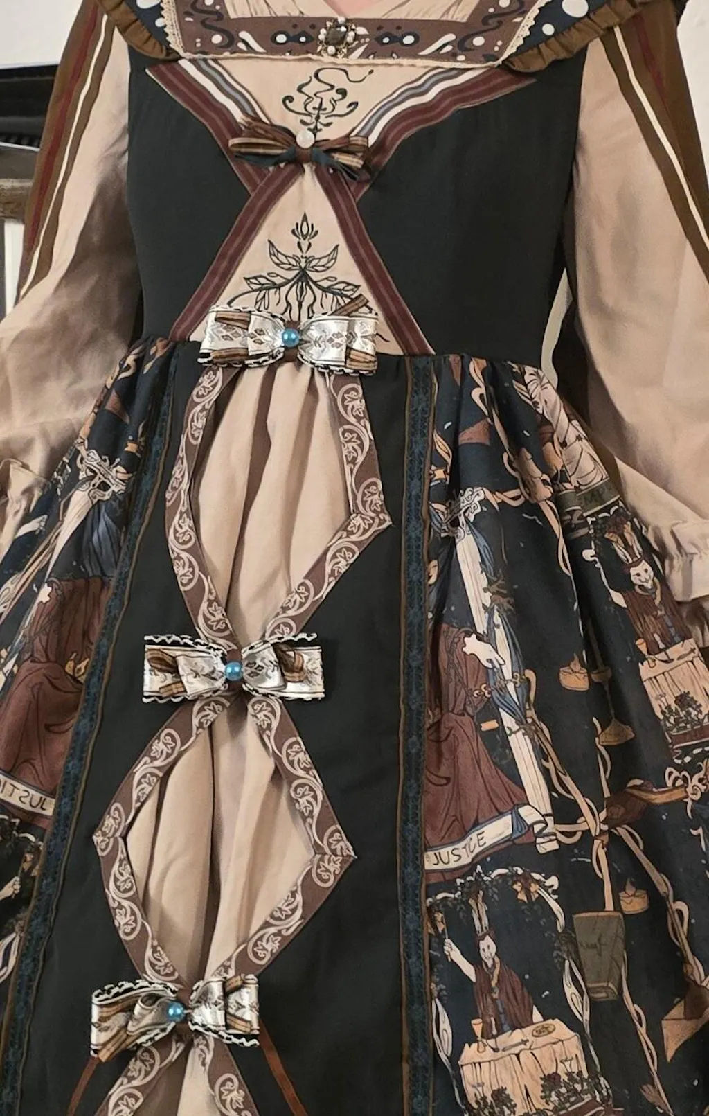 I absolutely LOVE this dress. I ordered the “Older Sister” design and couldn’t be happier with it. The dress features so many lovely details: buttons, bows, and ruffles, all coming together to create an incredibly beautiful and well-thought-out piece. The tarot card print is a real eye-catcher and makes the dress stand out even more. The fabric is sturdy, yet still soft and comfortable to wear. I also really like the hood, which can be secured with two attached buttons.