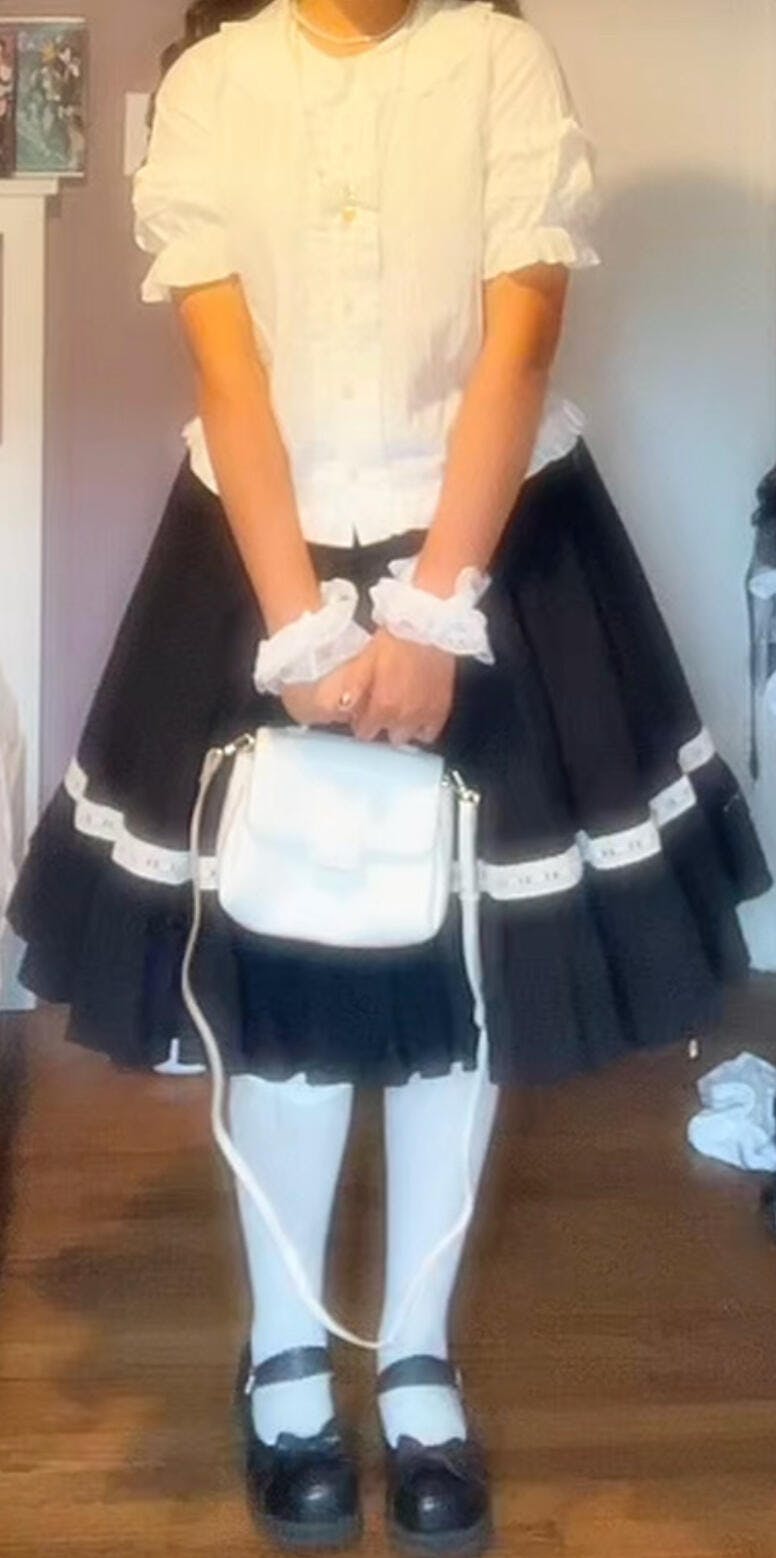 - Chemisier Lolita à manches volantées : les manches courtes à volants ajoutent une touche ludique à ce chemisier Lolita respirant.