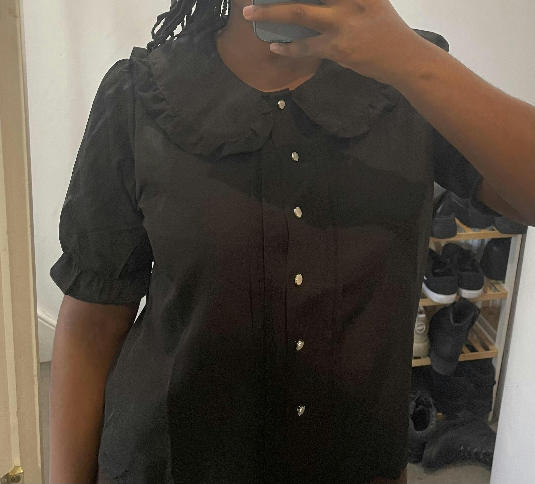 Happy with this blouse, the shape of the collar and sleeves are perfect.