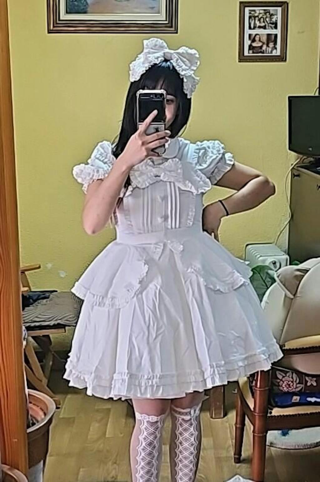 I don’t have any issues with the dress or bonnet, and it’s really comfortable to wear as I tried it on and walked for a bit around the house in this set:3