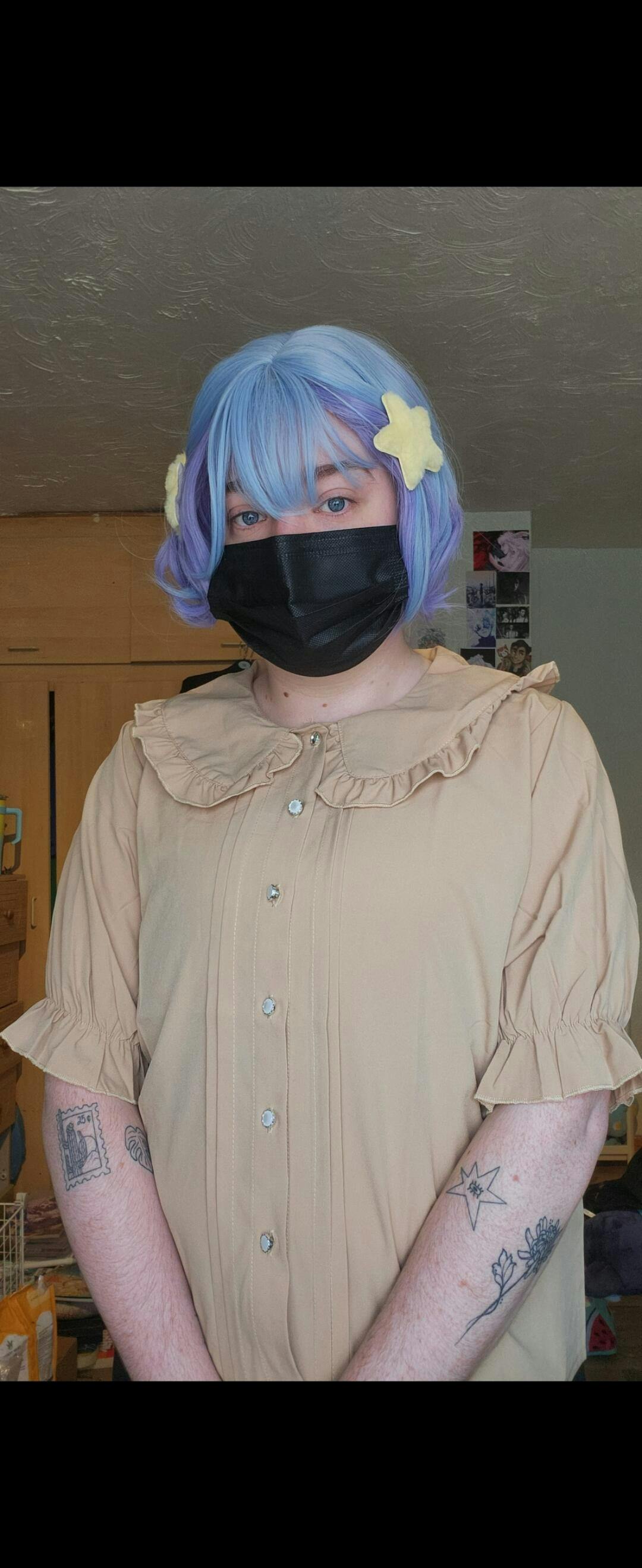 - The Lolita shirt features an adorable Peter Pan collar and ruffles at the cuffs, adding a touch of femininity.