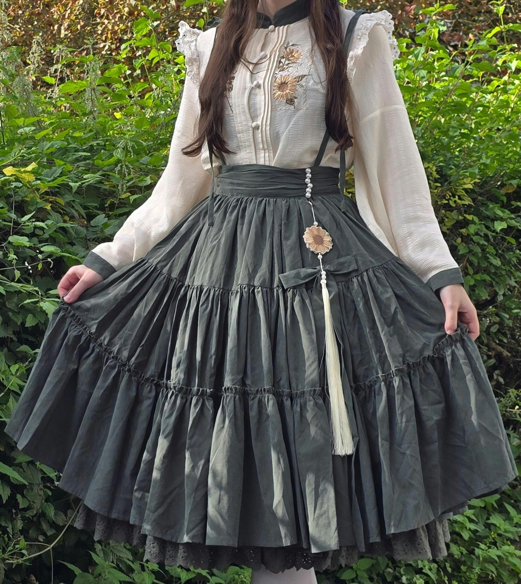 - This Chinese-style Lolita outfit features delicate sunflower prints.