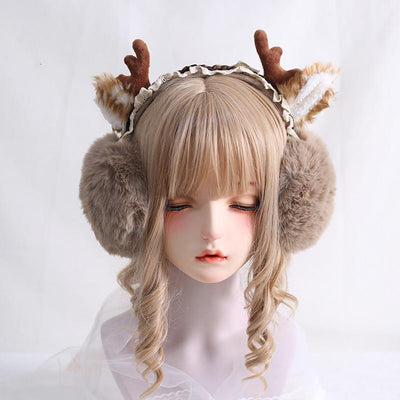- This is an antler-shape warm furry earmuff, you can wear it as lovely Lolita KC, which is very suitable for winter or Christmas outfits.